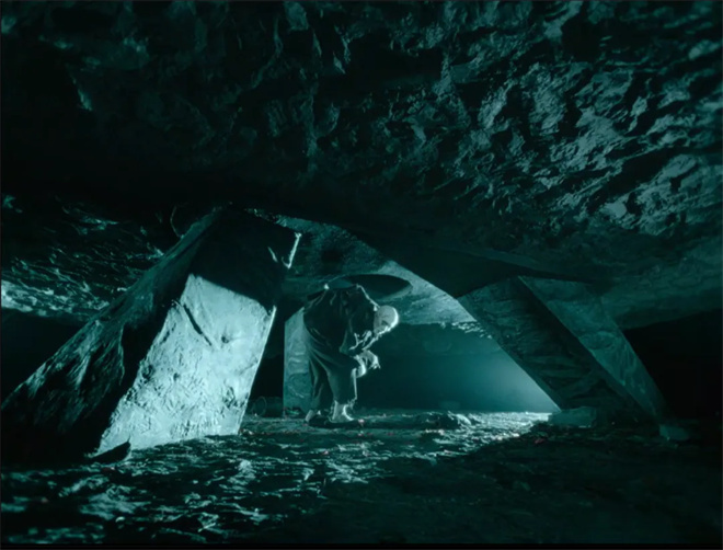 从大她者走进地下通道、寻找迷魂者的整个过程中,画面呈现出扭曲反透视的建筑布景、高明暗反差的光影、非自然主义的强色调、墙面上的恐怖阴影等明显致敬1920年代德国表现主义电影的视觉风格,电影《诺斯费拉图》《卡里加利博士的小屋》《大都会》都是这类流派的代表作。