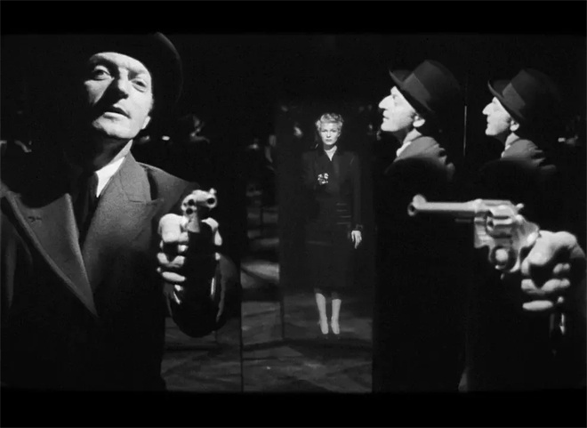 赵又廷在一个布满了镜面的空间中持枪找寻易烊千玺,也在其中迷失了方向。这场镜子迷宫戏的致敬来源可以追溯至1947年由奥逊威尔斯执导的经典黑色电影《上海小姐》。