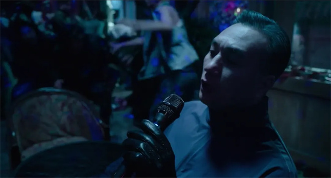 邱默云近似黑色电影里蛇蝎美人的人设,他体内的声音让音乐家和长官都着了迷,也都陷入精神混乱。易烊千玺在表演中细腻展露了些许妖娆的动作细节。