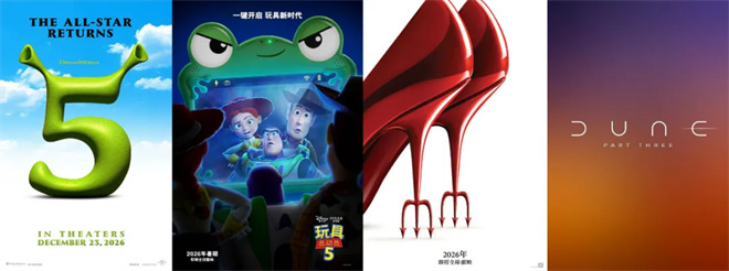 在其它真人电影以及动画电影方面,《勇敢者游戏3》《沙丘3》《穿普拉达的女王2》《怪物史莱克5》《玩具总动员5》《小黄人大眼萌3》等中国观众比较熟悉的系列续作都将在明年亮相,主创阵容也悉数回归。