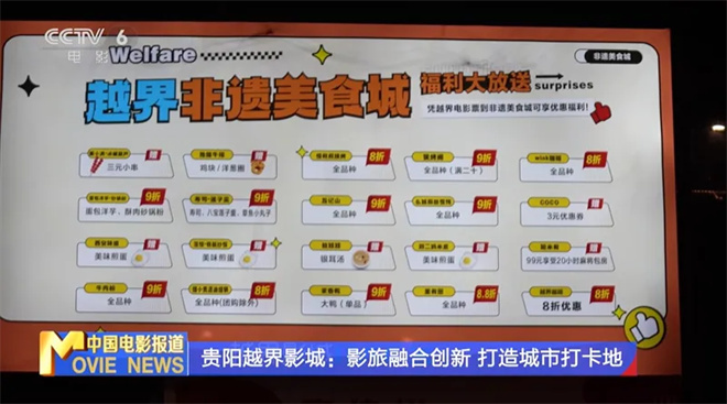 贵阳越界影城拥有亚洲最宽的IMAX-GT银幕,硬件实力卓越。影院紧抓市场机遇,打造电影+非遗+住宿+餐饮多元融合体验,不仅吸引了众多游客,更让一张电影票根成为开启本地文旅体验的通行证。
