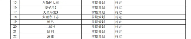 光线传媒部分预计制作电影项目表