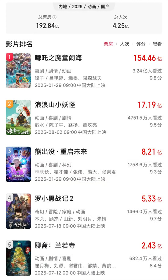 这种密集开发并非偶然2025年国产动画电影总票房超过192亿元,神话题材占比超九成,《哪吒2》和《浪浪山小妖怪》验证了市场可行性,资本自然蜂拥而至,但扎堆创作背后是创意的严重透支。