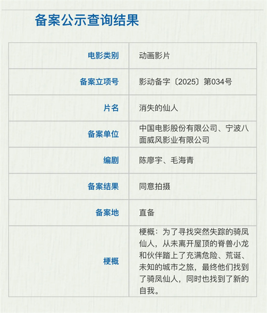 中影正在制作的《消失的仙人》也让人眼前一亮。影片以中国古建筑殿脊上的神兽为主角,讲述小龙为寻找失踪的骑凤仙人,与伙伴在城市中展开冒险的故事。选材角度独特,具有深厚的传统文化底蕴。